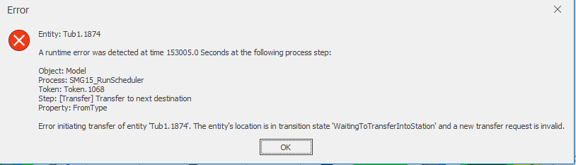 I am repeatedly getting this (attached picture) error in my Simio Model, what could be the probable cause and what should I make sure so that this problem does not repeat?